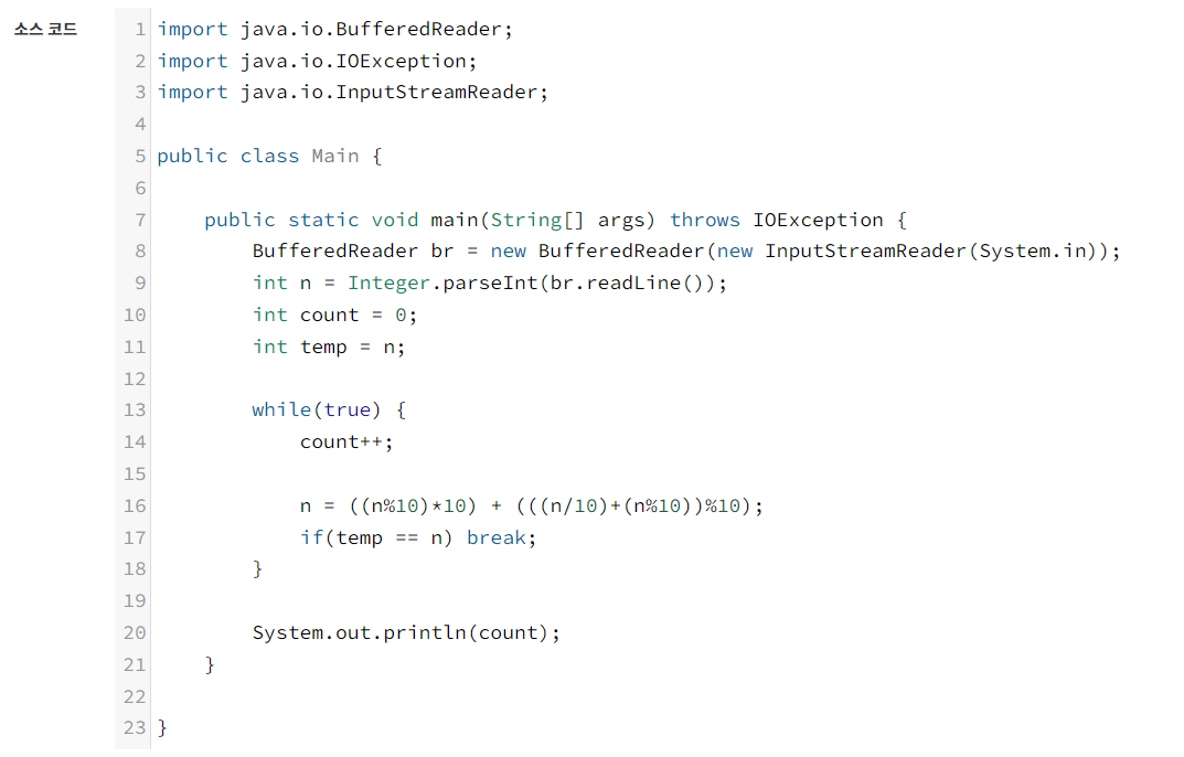 결과적으로 새로운 수가 가장 처음 입력받은 수와 동일해질때까지 해당 과정을 반복할 때, 몇 번을 반복해야 하는지를 구하는 문제이다.