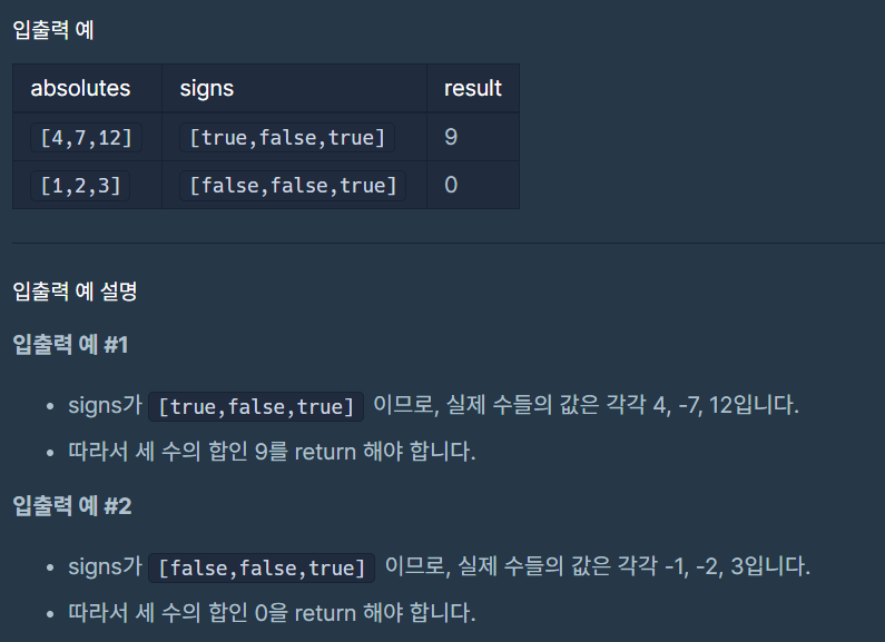 랜덤으로 주어지는 최대 1,000개의 정수에서 절댓값과 양수/음수 여부를 분리하여 각각의 배열에 넣어놓은 상황을 가정한 문제이다. int형 배열인 absolutes에는 정수의 절댓값만이, boolean형 배열인 signs에는 정수의 양수/음수의 값이 각각 true/false 의 값으로 저장되어있다.